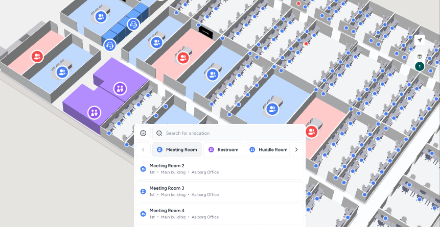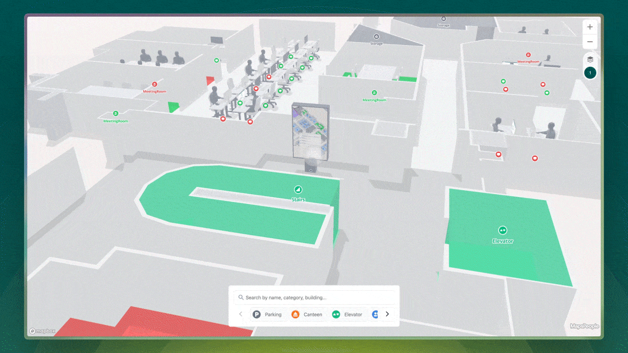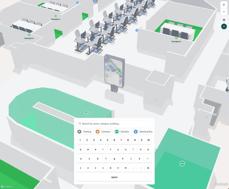 The MapsIndoors Kiosk builds on top of the design we have designed for Map Template. The kiosk is of course compatible with both Mapbox and Google Maps.\
